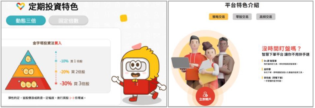 康和證券提供小資族多樣性的金融理財服務,除了定期定額買股慢慢累積自己的財富外,推出動態三倍投,投資人可以根據市場狀況對部位做調整,在保持定期投入的紀律下,