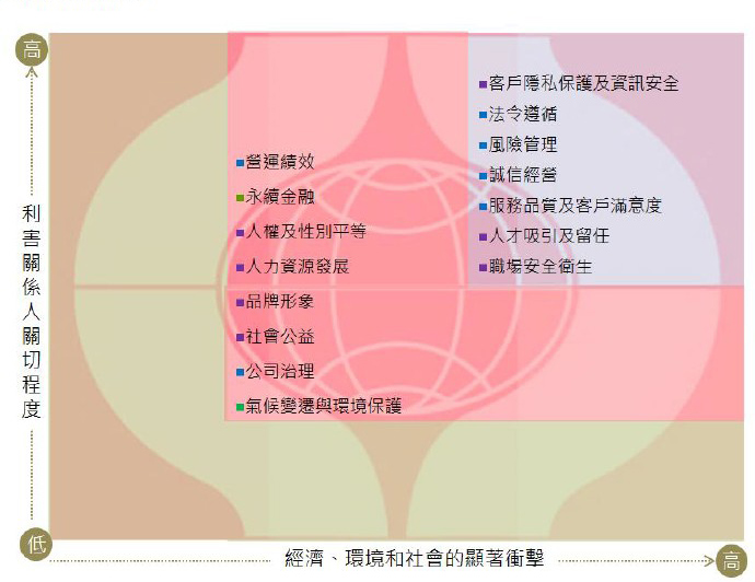 永续发展委员会工作小组每年汇整利害关系人辨识结果,并将重大议题对经济、环境及人(含人权)等面向产生的影响汇整后编制于永续报告书中,经永续发展委员会审查后,再呈送董事长核准后出刊。